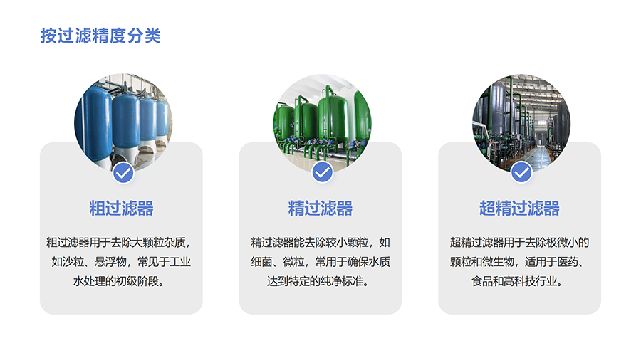 -沙濾器:通過砂層過濾,適合大顆粒懸浮物的去除。
